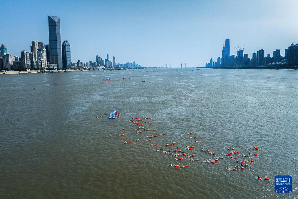 7月16日,选手们横渡长江。新华社记者 肖艺九 摄