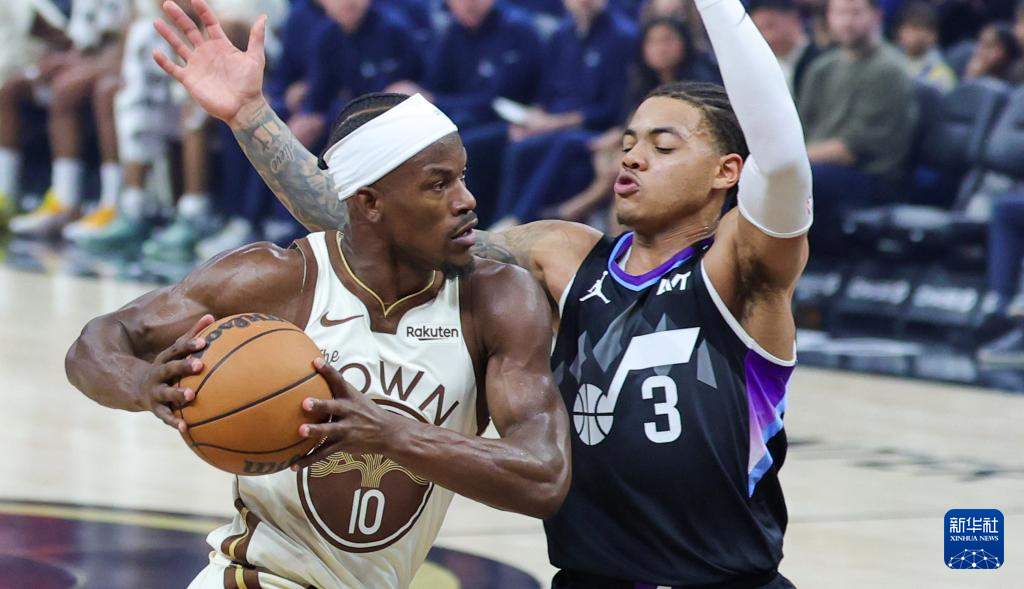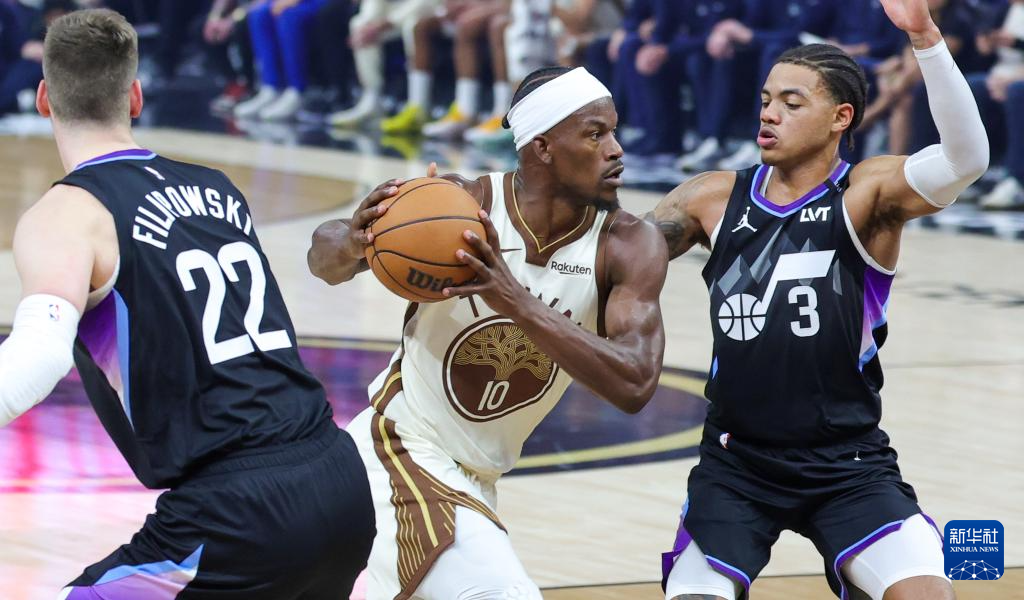 11月24日,勇士队球员巴特勒(中)在比赛中突破。