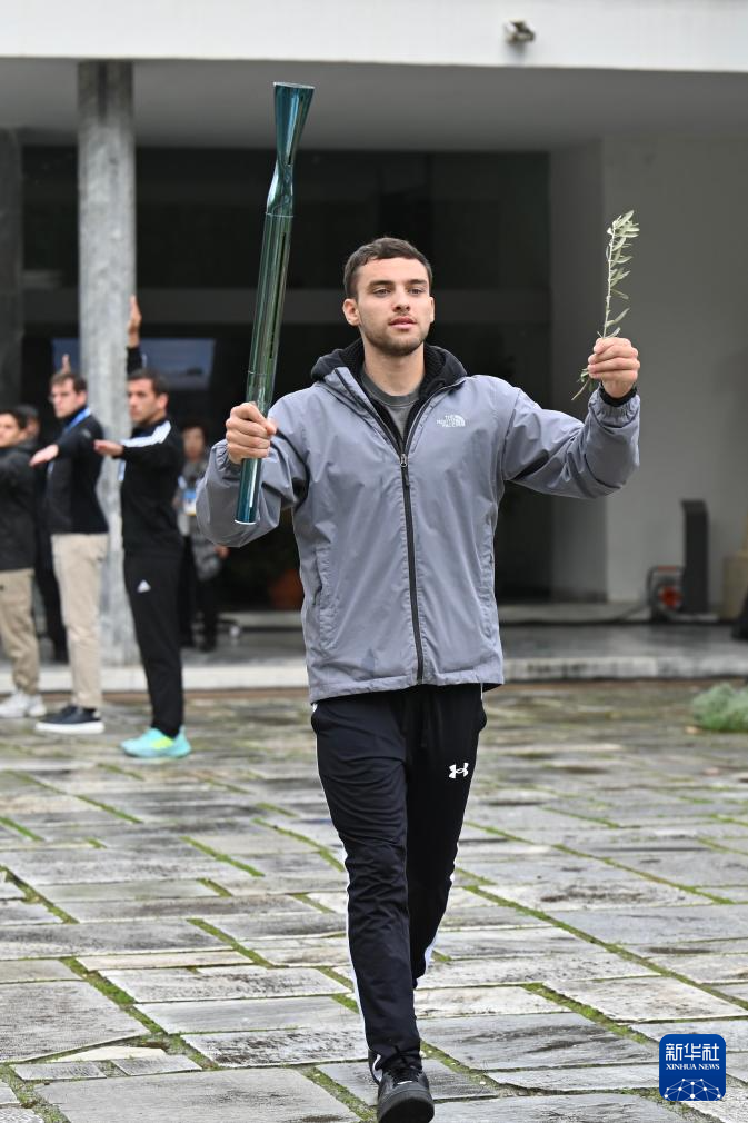 11月25日,第一棒火炬手、希腊运动员彼得罗斯在彩排中。