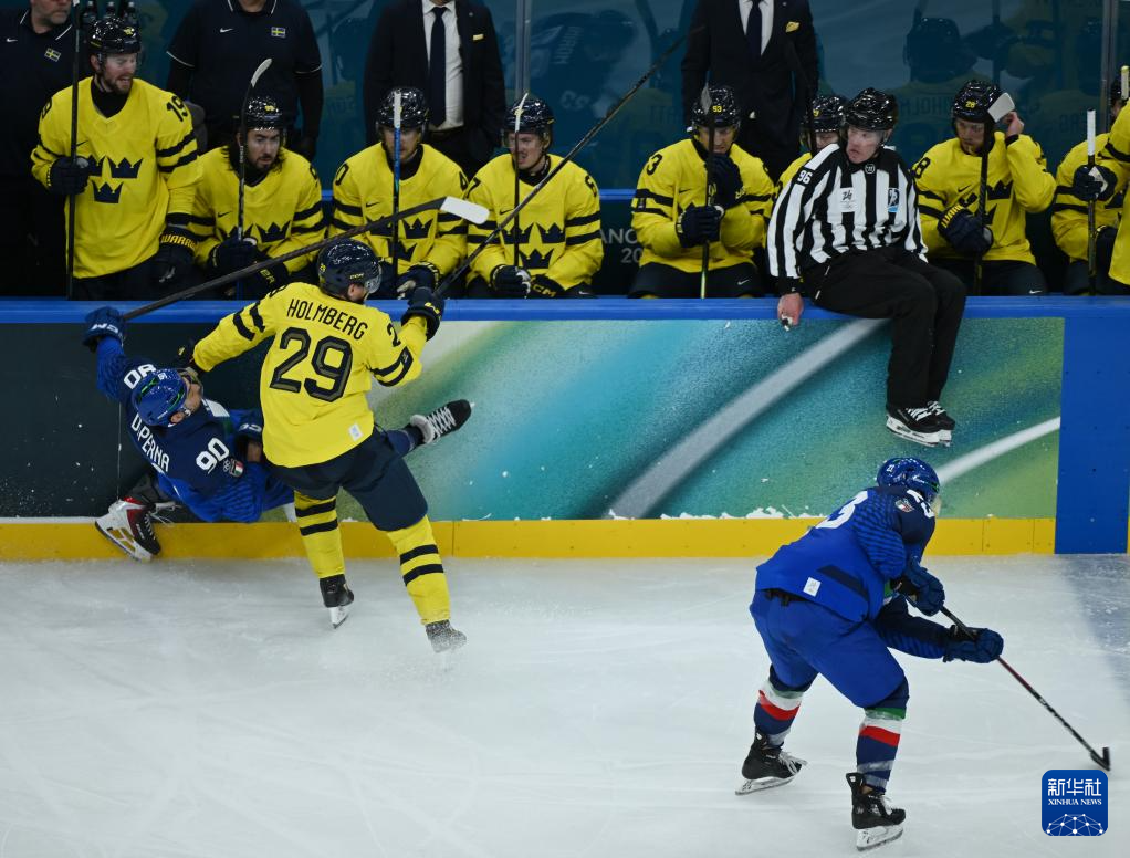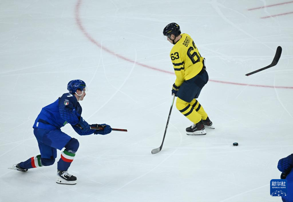 当地时间2月11日,在意大利米兰举行的米兰-科尔蒂纳冬奥会冰球项目男子小组赛B组比赛中,瑞典队5比2战胜意大利队。