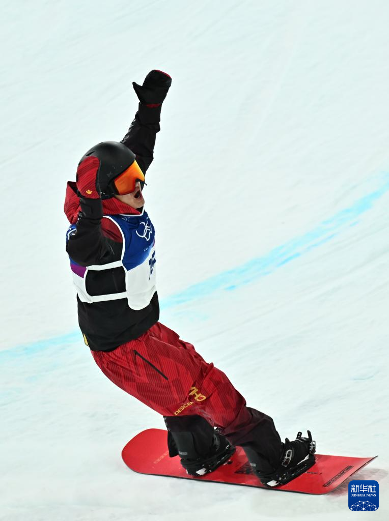 2月11日,中国选手王梓阳在比赛中庆祝。他晋级决赛。