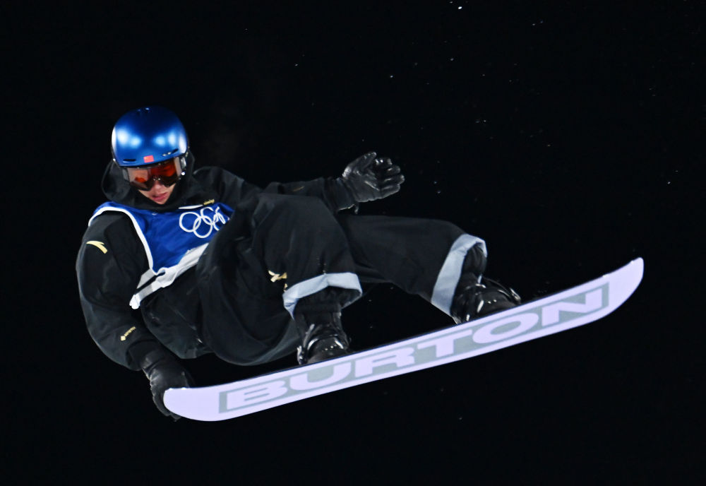 2月7日,苏翊鸣在单板滑雪项目男子大跳台决赛中。新华社记者 胡超 摄