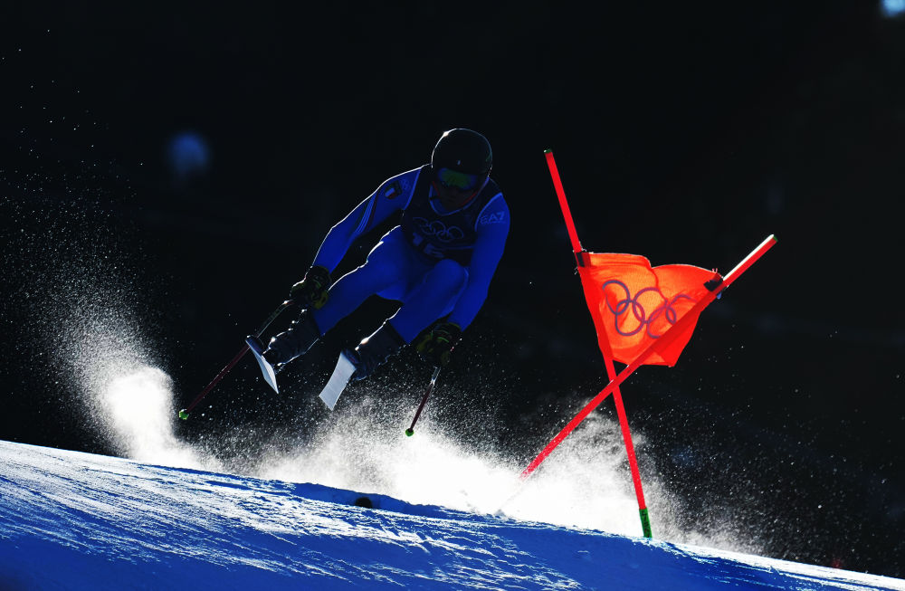 2月9日,意大利选手马蒂亚·卡塞在高山滑雪项目男子团体全能比赛中。新华社记者 胡虎虎 摄