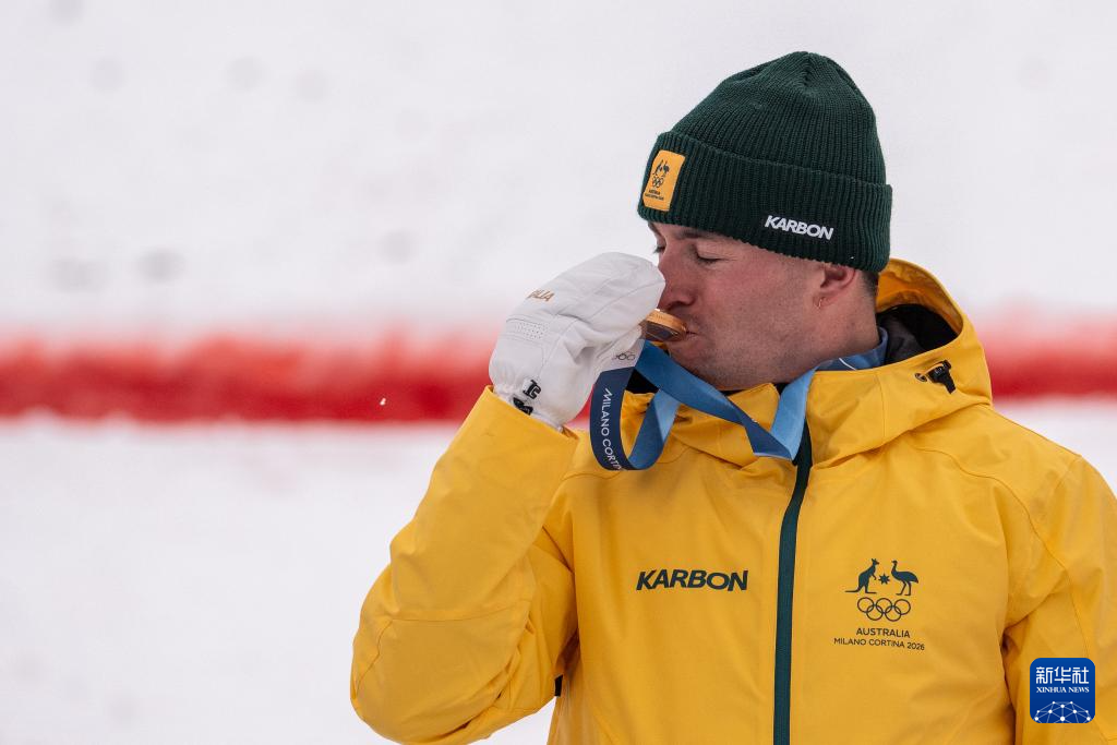 2月12日,澳大利亚选手库珀·伍兹(上)在比赛后庆祝。他获得冠军。