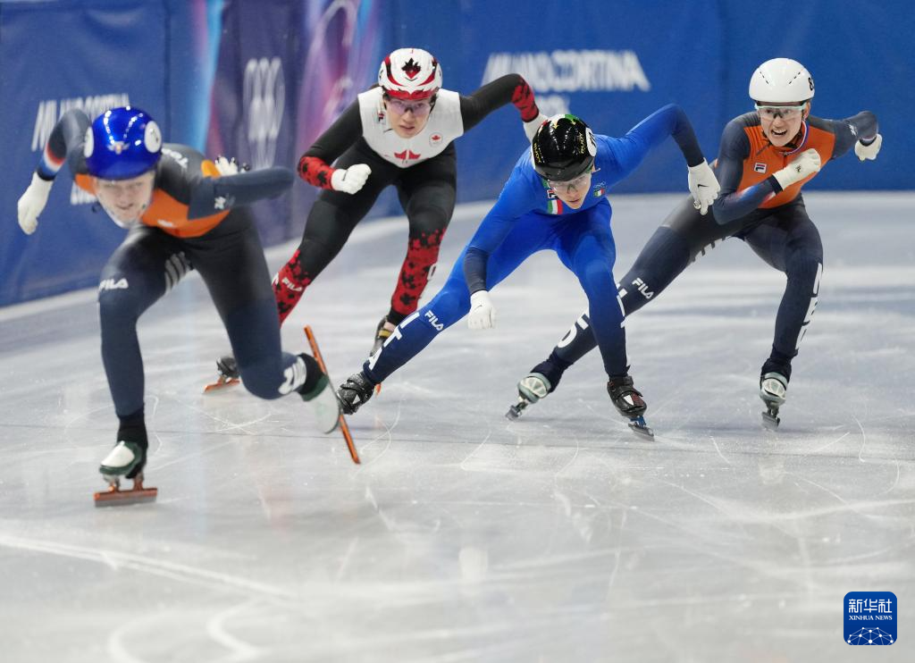 2月12日,意大利选手丰塔纳(右二)在比赛中。她获得亚军。