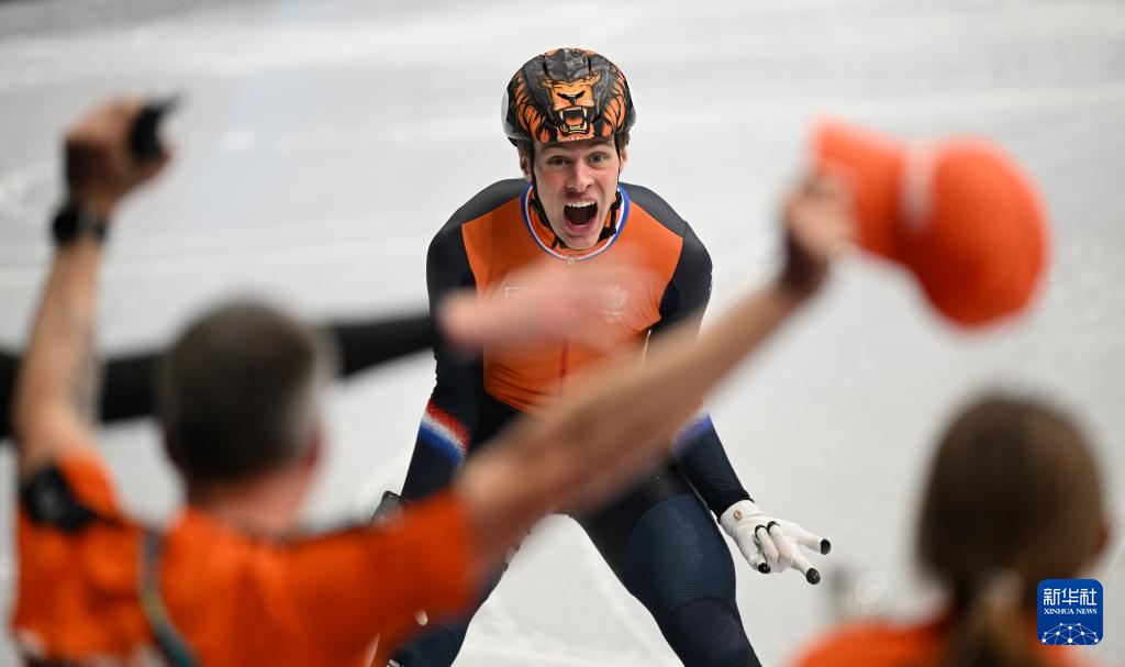 2月12日,冠军荷兰选手范特沃特在比赛后庆祝。