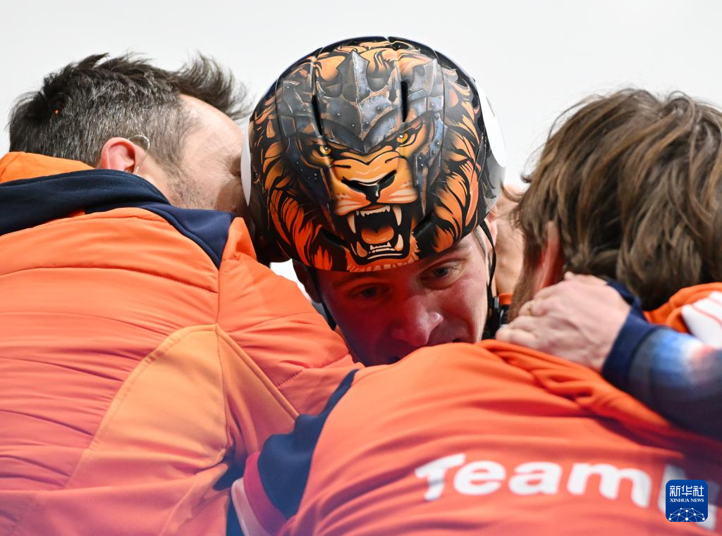 2月12日,冠军荷兰选手范特沃特(中)在比赛后庆祝。