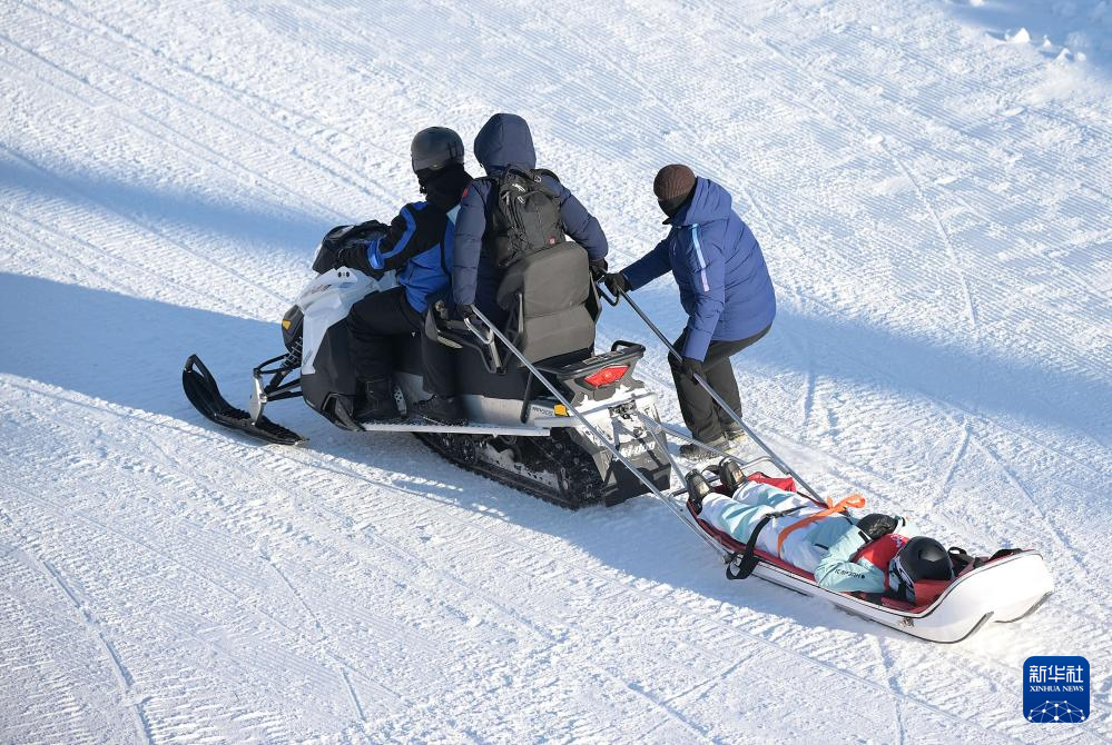 2月19日,吉林队选手马卓妮(右)受伤后被工作人员送出场外。