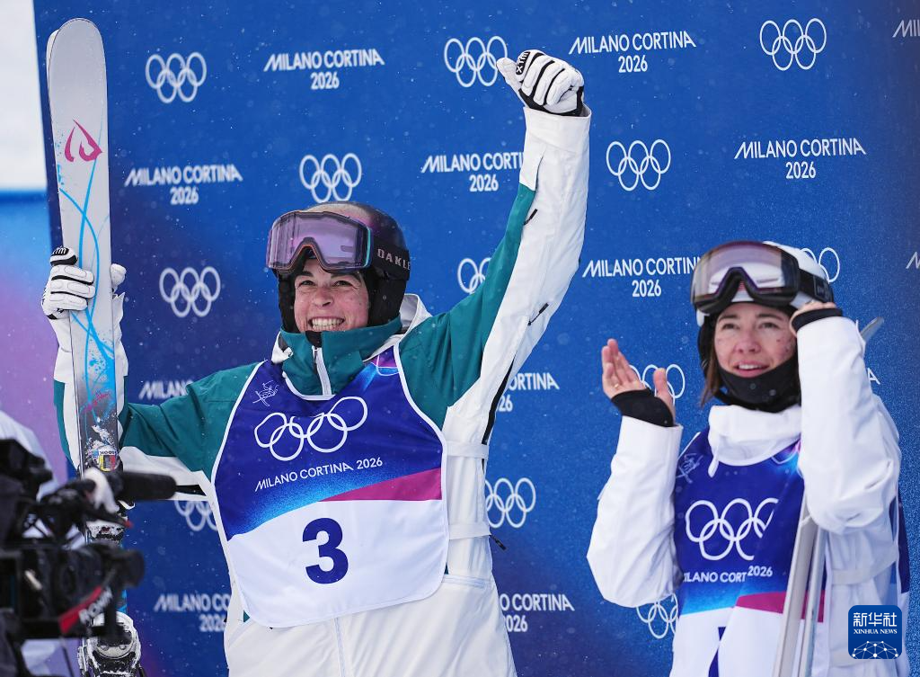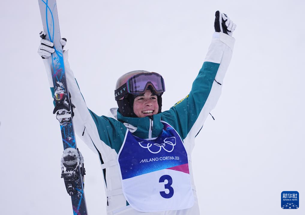 当地时间2月14日,在意大利利维尼奥举行的米兰-科尔蒂纳冬奥会自由式滑雪女子双人雪上技巧比赛中,澳大利亚选手安东尼获得冠军、美国选手考夫和莱姆利分别获得亚军和季军。