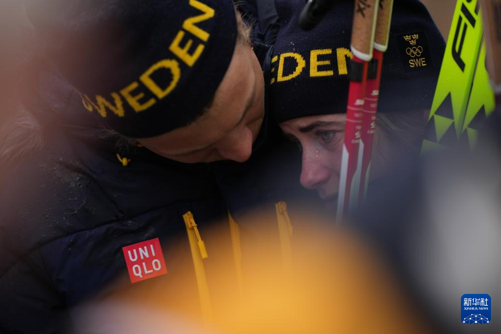 2月14日,挪威队选手克里斯廷·奥斯特古伦·福斯内斯在比赛后等待成绩确认。挪威队获得冠军。