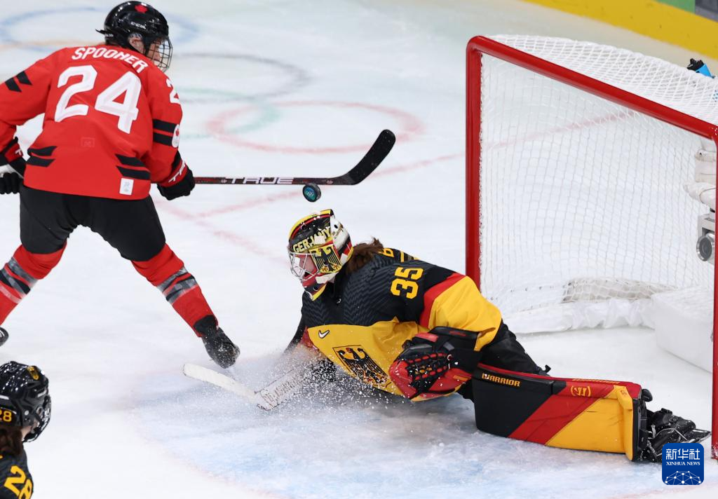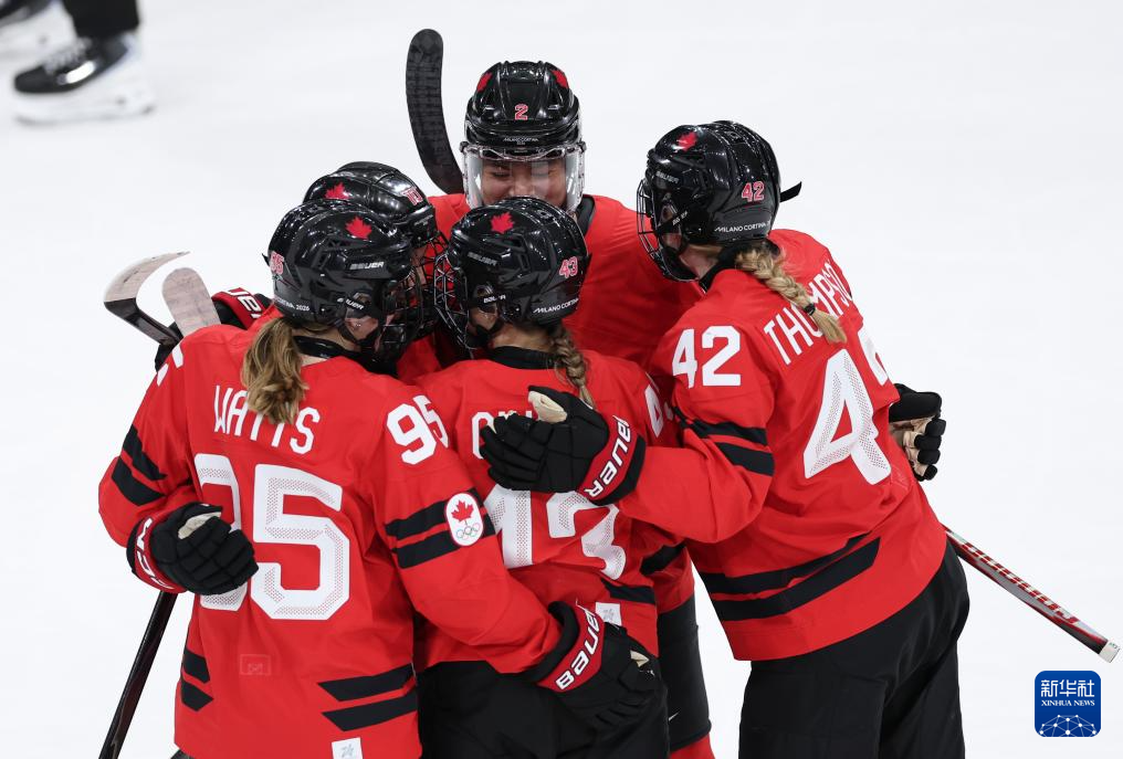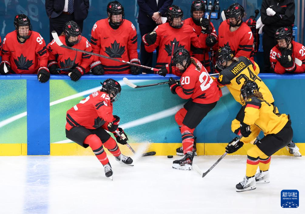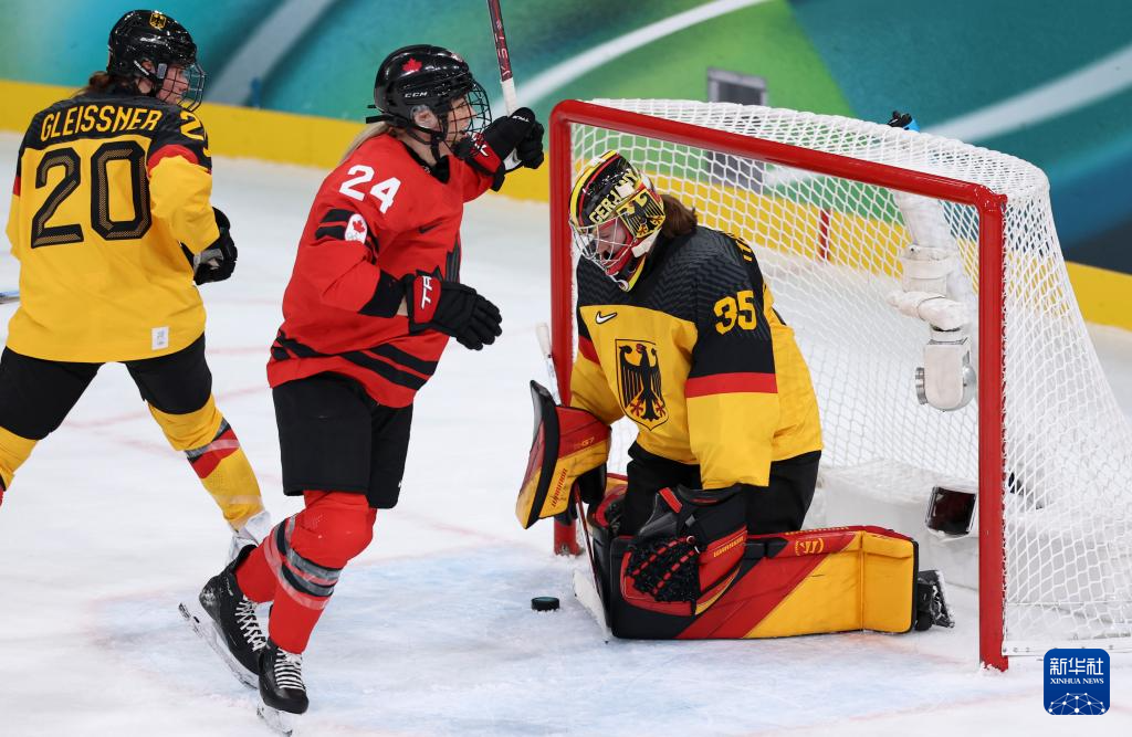 当地时间2月14日,在意大利米兰举行的米兰-科尔蒂纳冬奥会冰球项目女子四分之一决赛中,加拿大队5比1战胜德国队。