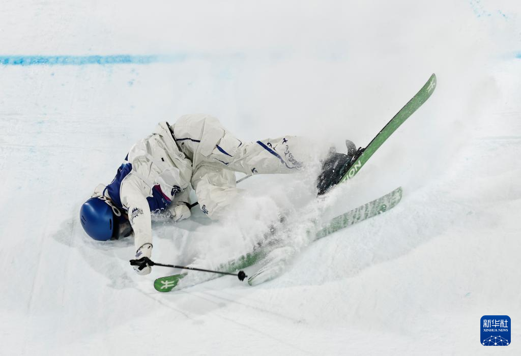 2月14日,中国选手谷爱凌在比赛中摔倒。