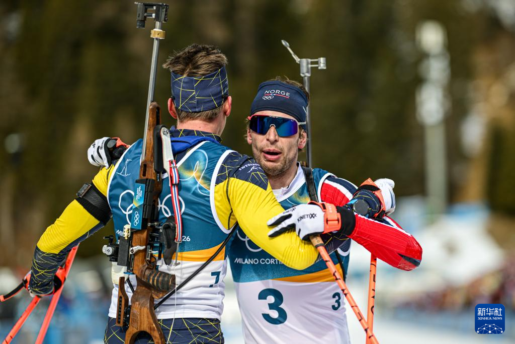 当地时间2月15日,米兰-科尔蒂纳冬奥会冬季两项男子12.5公里追逐赛在意大利安泰塞尔瓦举行。