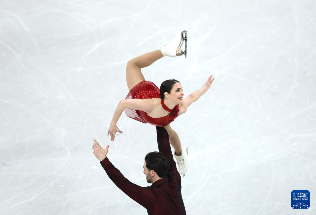 2月16日,加拿大队组合佩雷拉/米肖(前)在双人滑自由滑比赛中。