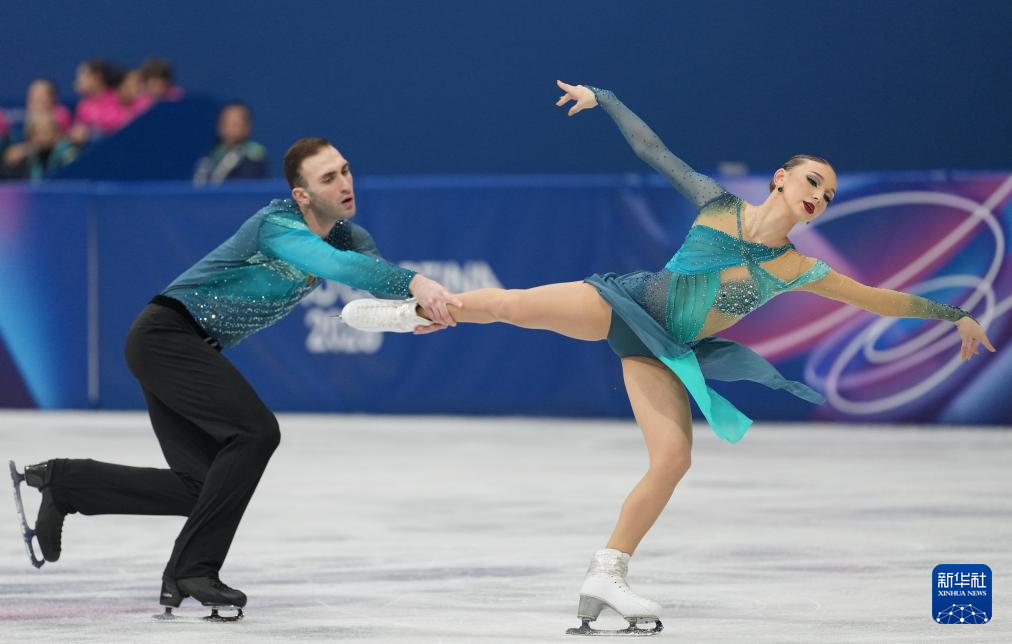 2月16日,格鲁吉亚组合梅特尔基娜/别鲁拉瓦(左)在比赛中。他们获得双人滑项目亚军。