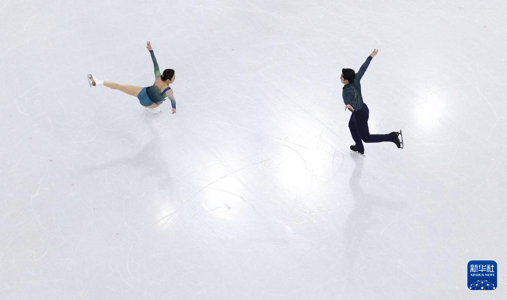 2月16日,日本组合三浦璃来(左)/木原龙一在比赛中。他们获得双人滑项目冠军。