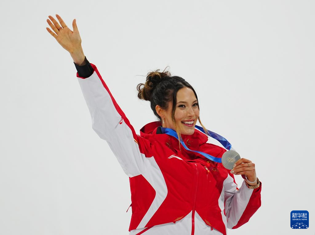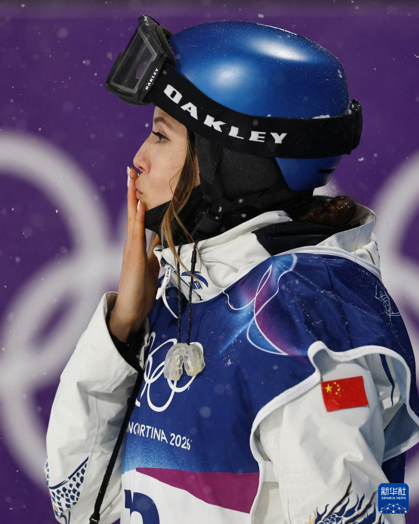 2月16日,中国选手谷爱凌在第三跳后。她获得亚军。