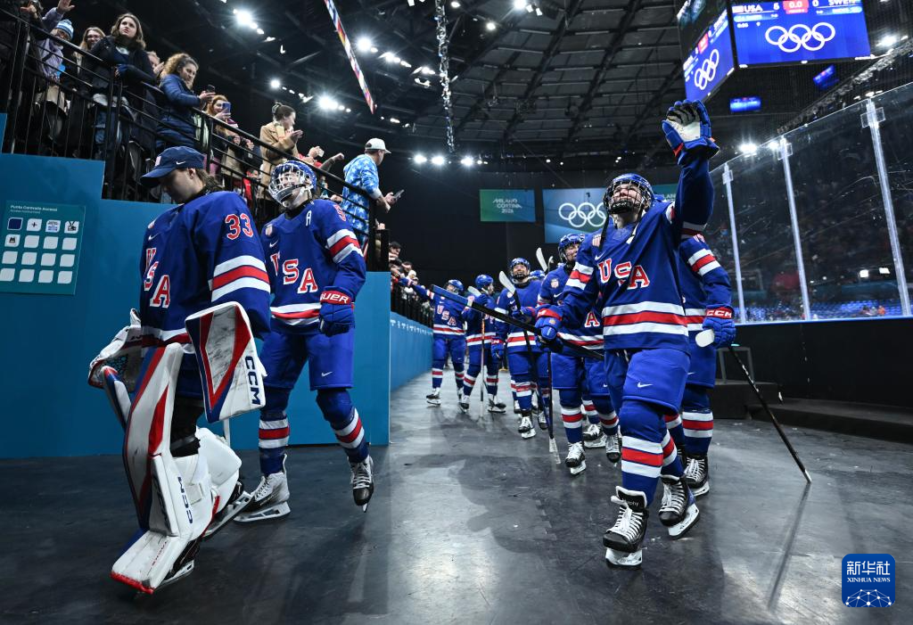 当地时间2月16日,在意大利米兰举行的米兰-科尔蒂纳冬奥会冰球项目女子半决赛中,美国队5比0战胜瑞典队。
