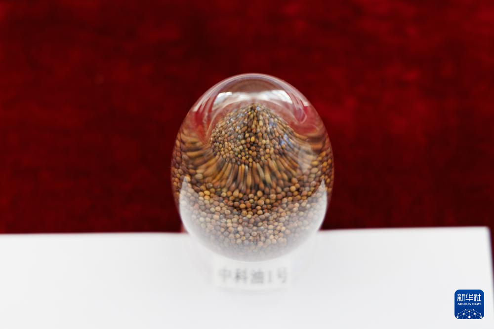 这是发布会现场展示的中科油1号油菜籽(12月22日摄)。新华社记者 金立旺 摄