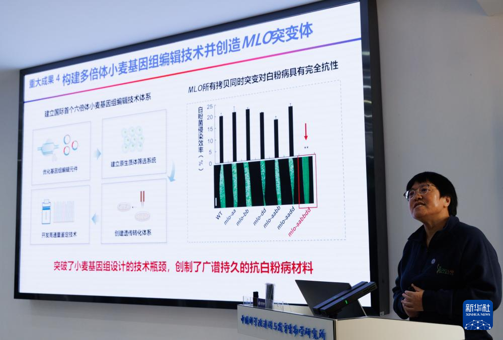 12月22日,在中国科学院遗传与发育生物学研究所举行的发布会上,中国科学院遗传与发育生物学研究所研究员高彩霞在介绍研究成果。新华社记者 金立旺 摄