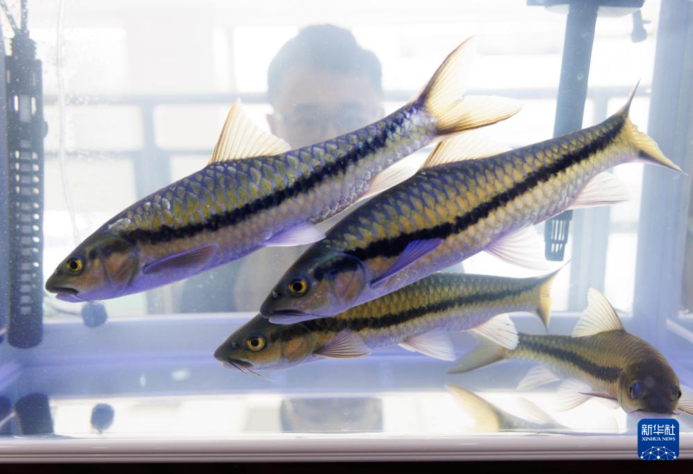 这是发布会现场展示的软鳍新光唇鱼“墨龙1号”(12月22日摄)。新华社记者 金立旺 摄