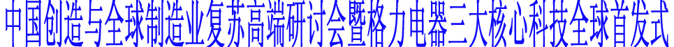時(shí)間:2010年7月15日8時(shí)30分 地點(diǎn):人民大會(huì)堂(北京) 主題:中國(guó)創(chuàng)造與全球制造業(yè)復(fù)蘇高端研討會(huì)暨格力電器三大核心科技全球首發(fā)式