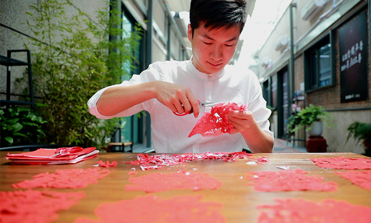 作為一個(gè)90后的剪紙傳承人,就要剪一些有新時(shí)代特點(diǎn)的剪紙作品。我擅長(zhǎng)的是即興創(chuàng)作、脫稿剪紙,速度就是快。我們會(huì)了那些傳統(tǒng)的圖案之外,還要能夠看到任何的物體,或者別人給我一個(gè)命題就能即時(shí)創(chuàng)作。搞剪紙創(chuàng)作一定要豐富自己的知識(shí)面,這樣腦海中才會(huì)有更多的畫(huà)面跟場(chǎng)景。我感覺(jué)剪紙是讓我用紙和剪刀在對(duì)話,把我的情感通過(guò)紙釋放出來(lái)。其實(shí)是一種靜修,或者自我的享受。我以后要開(kāi)展的工作,或許是要承擔(dān)著怎樣讓剪紙?jiān)?0后、10后、20后這些年輕一代的未來(lái)人,怎么能認(rèn)識(shí)我們這種傳統(tǒng)藝術(shù),這是我一生要去做的事情。