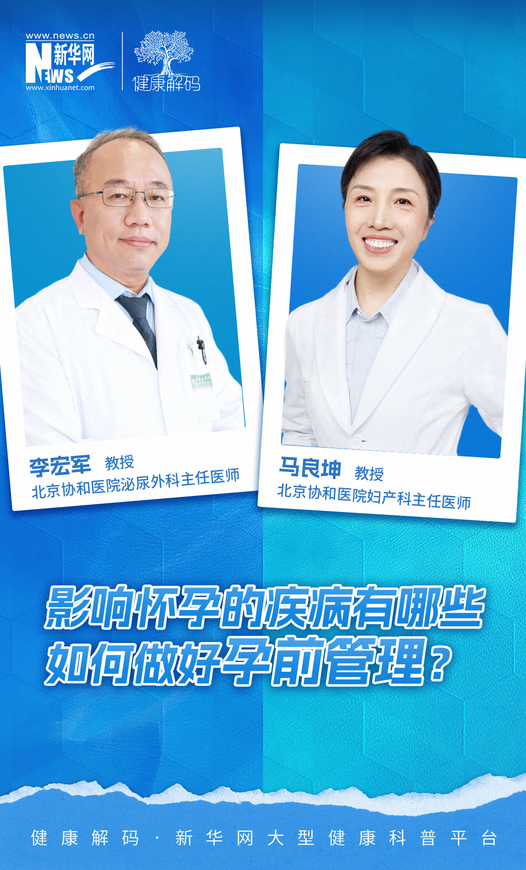 本系列节目我们邀请了北京协和医院妇产科主任医师马良坤教授、北京协和医院泌尿外科主任医师李宏军教授共同分享《影响怀孕的疾病有哪些 如何做好孕前管理?(下)》。