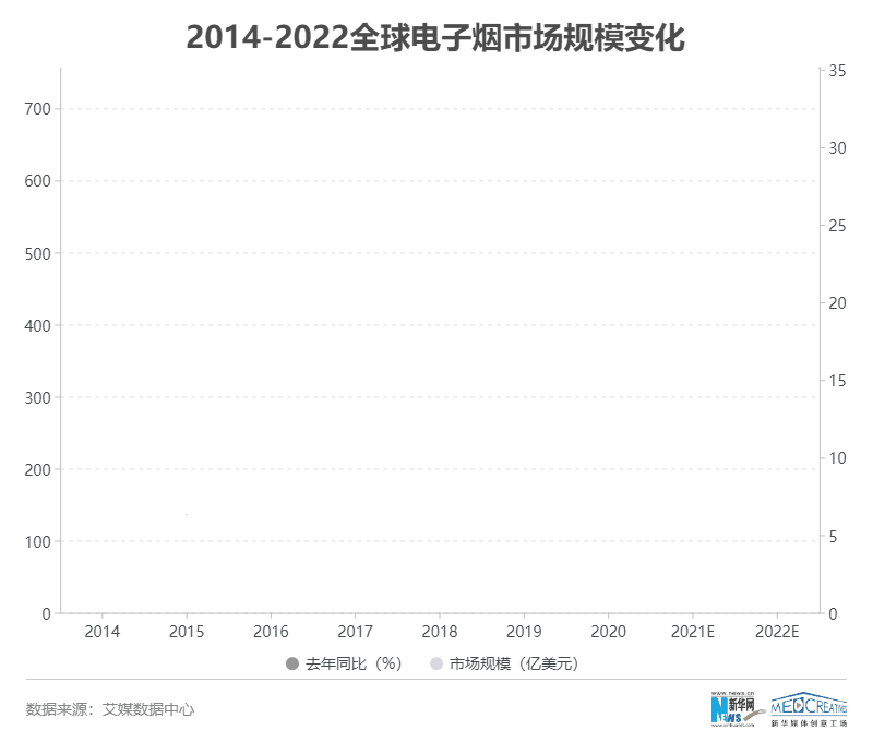 ??? 近幾年,全球電子煙行業發展迅速。國際市場研究中心Euromonitor International報告顯示,2011年到2018年的七年間,全球電子煙使用人數整整增漲了6倍。艾媒咨詢(iiMedia Research)數據顯示,2020年全球電子煙行業的市場銷售額達到424億美元,同比增長15.6%。