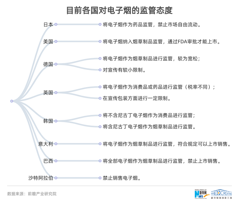 ????? 目前,各國對電子煙銷售的監管思路和態度也各不相同,如美國、德國、英國等國都有對電子煙嚴格的監管,沙特阿拉伯等國家禁止銷售電子煙。