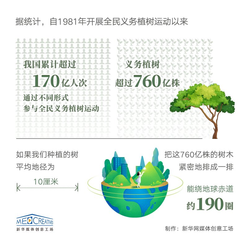 1981年,第五屆全國人民代表大會第四次會議通過《關于開展全民義務植樹運動的決議》。至此,植樹造林、綠化祖國成為中國每一位適齡公民的法定義務,一代代中華兒女熱情參與到綠化祖國的浪潮中,義務植樹運動從此在神州大地蓬勃開展起來。每到植樹時節,從城市到鄉村、從機關到工廠、從部隊到學校、從內地到邊疆,全國各族人民揮鍬揚鋤,造林綠化的浪潮一浪高過一浪。