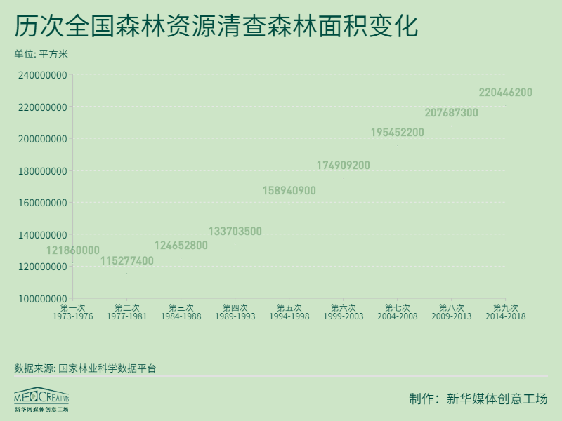 第九次全國森林資源清查(2014-2018)結果顯示,全國人工林面積達12億畝,居世界首位。