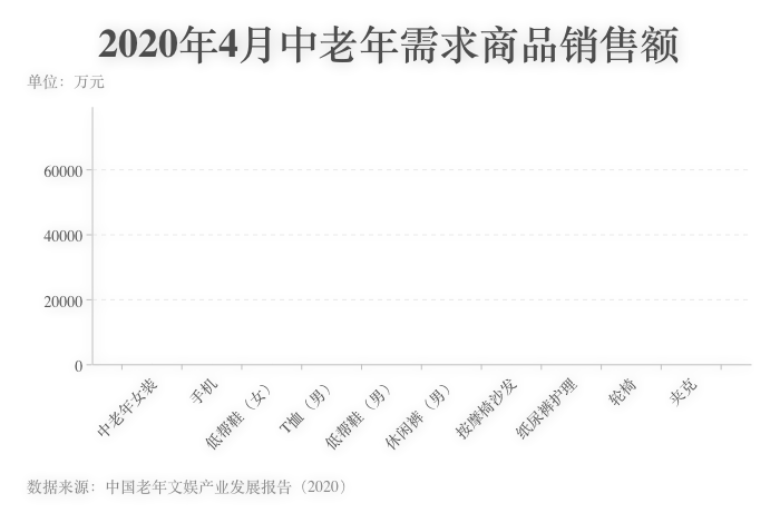 ????? 艾瑞數據顯示,2020年4月,銷售額排名前三的中老年需求商品中,2類商品為女性消費品,其中中老年女裝的銷售額是排名第二的手機的2倍,反映了中老年女性比男性具有更強的消費需求。