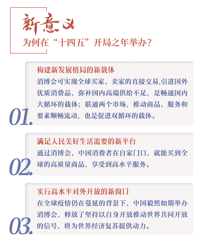 ??? 本屆消博會(huì)圍繞海南 "國(guó)際旅游消費(fèi)中心"建設(shè),匯聚海南自貿(mào)港政策優(yōu)勢(shì),打造國(guó)際消費(fèi)精品的全球展示和交易平臺(tái)。“消博會(huì)可實(shí)現(xiàn)全球買家、賣家的直接交易,引進(jìn)國(guó)外優(yōu)質(zhì)消費(fèi)品,彌補(bǔ)國(guó)內(nèi)高端供給不足,是暢通國(guó)內(nèi)大循環(huán)的載體;聯(lián)通兩個(gè)市場(chǎng),推動(dòng)商品、服務(wù)和要素順暢流動(dòng),也是促進(jìn)雙循環(huán)的載體”,對(duì)于舉辦消博會(huì)的意義,商務(wù)部副部長(zhǎng)王炳南這樣闡釋。