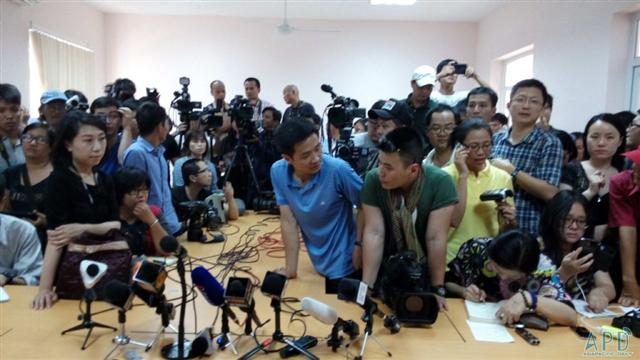 圖為設(shè)在富國(guó)島的越南搜救前線指揮辦公室,各國(guó)記者在等待新聞發(fā)布會(huì)的召開(kāi)。