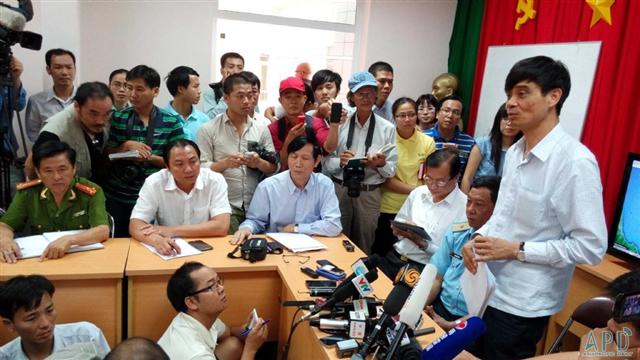 ????設在富國島的越南搜救前線指揮辦公室11日召開首次聯席會議。范貴肖主持會議并向新聞界通報越南搜救情況。