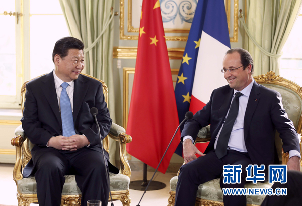 3月26日,國家主席習近平在巴黎同法國總統奧朗德舉行會談。新華社記者蘭紅光攝
