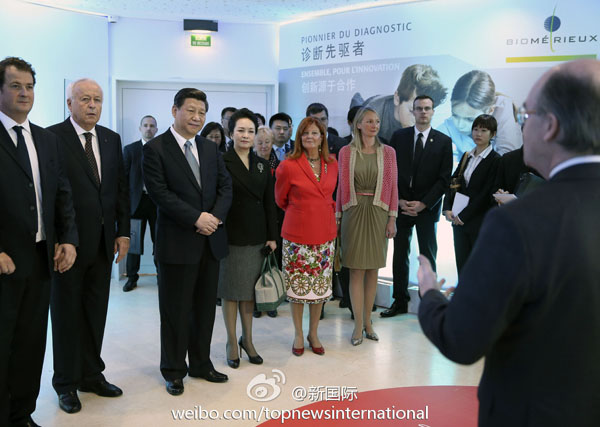 ???新華網北京3月27日電 據新華社“新國際”微博報道,習近平26日到訪梅里埃生物科研中心,了解尖端產品趨勢,詢問對華合作情況。梅里埃家族成功研制了多種重要疫苗。習近平說,梅里埃發展史是人類和病毒較量歷史的縮影,也是中法友好交往一段佳話。希望梅里埃集團為促進中法衛生合作作出更大貢獻。