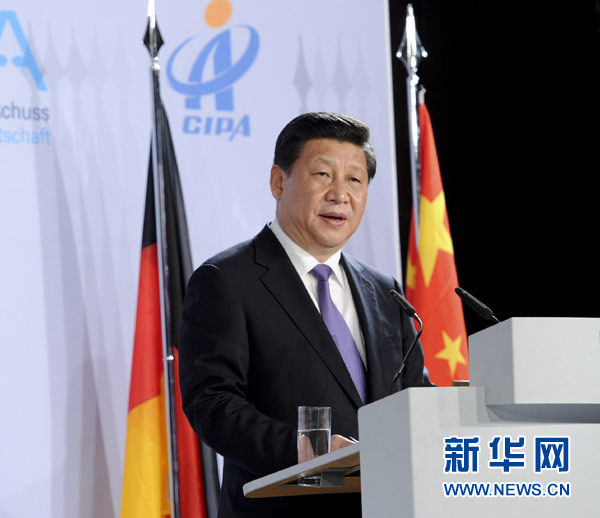 ????習近平在致辭中表示,經貿關系是中德關系的基石和推進器。中德互為各自地區最大貿易伙伴,深化經貿金融合作是我這次訪德的重要內容之一。兩國主管部門簽署了多個合作文件,對兩國企業是重大利好,必將進一步促進中德經貿往來和相互投資,對中歐經貿關系也將產生示范效應。