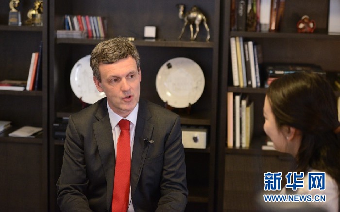比利時王國駐華大使馬懷宇接受新華網專訪。新華網記者郭小天攝