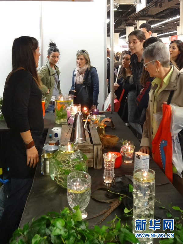 ????4月26日,巴塞羅那第一屆“手工藝品節(jié)”(Handmade Festival Barcelona)上,一些參展者向游客介紹如何進(jìn)行手工制作。