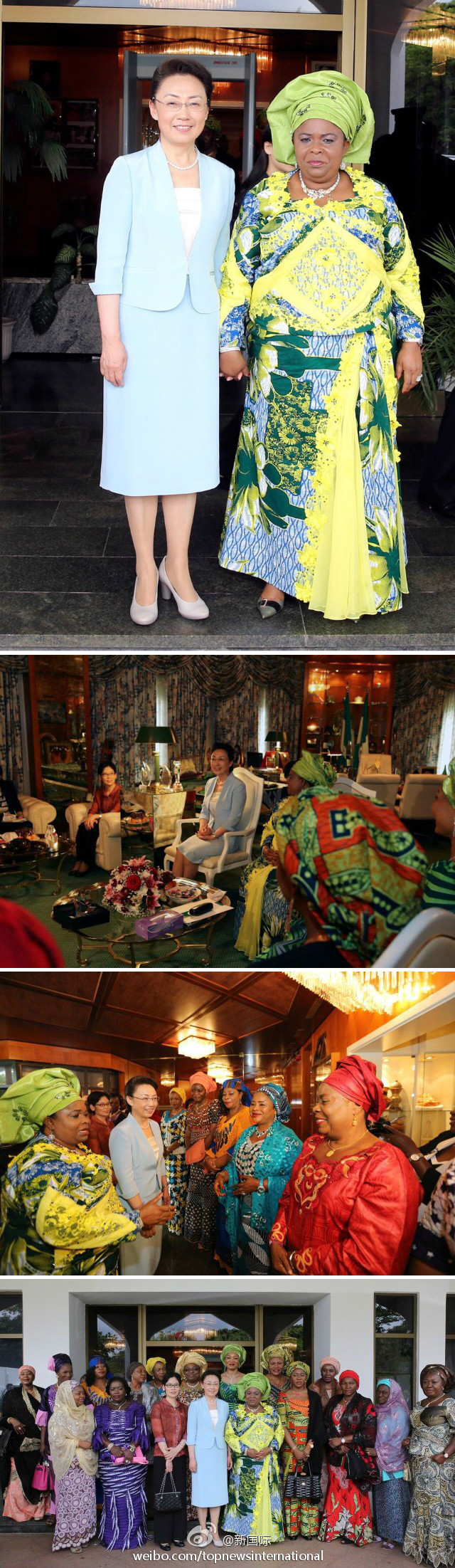????新華網北京5月8日電 據新華社“新國際”微博報道,當地時間7日上午,在李克強總理與尼日利亞總統喬納森會談之余,李克強總理夫人程虹在喬納森總統夫人佩興絲的陪同下,在總統夫人辦公室與多位尼日利亞婦女代表進行了座談。