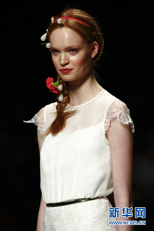 模特在T臺上展示西班牙品牌Victorio & Lucchino的婚紗。Victorio & Lucchino是來自西班牙塞維亞 (Sevilla)的兩位男服裝設(shè)計(jì)師的名字,Victorio和Lucchino同時(shí)也是西班牙本土知名時(shí)裝設(shè)計(jì)師組合之一。