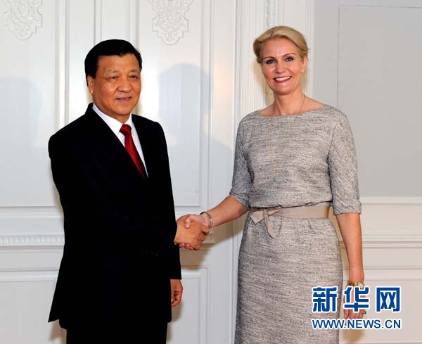 ??? 6月11日,正在丹麥進行正式訪問的中共中央政治局常委、中央書記處書記劉云山在哥本哈根會見丹麥?zhǔn)紫嗤袑帲┟芴亍?新華社記者 饒愛民 攝