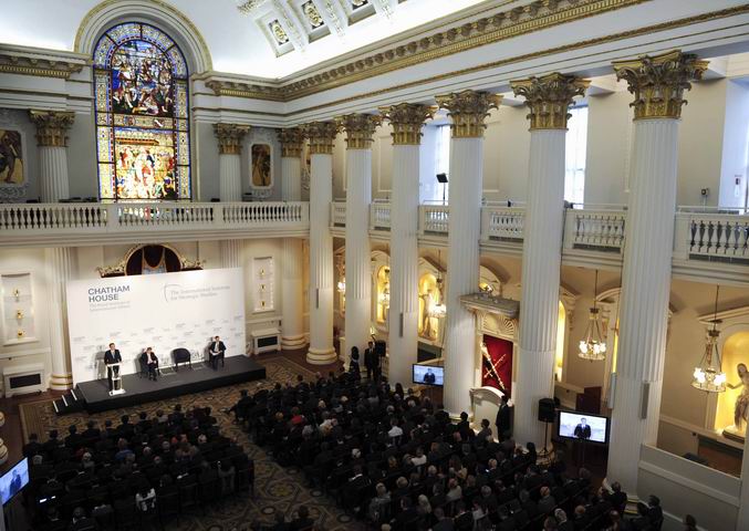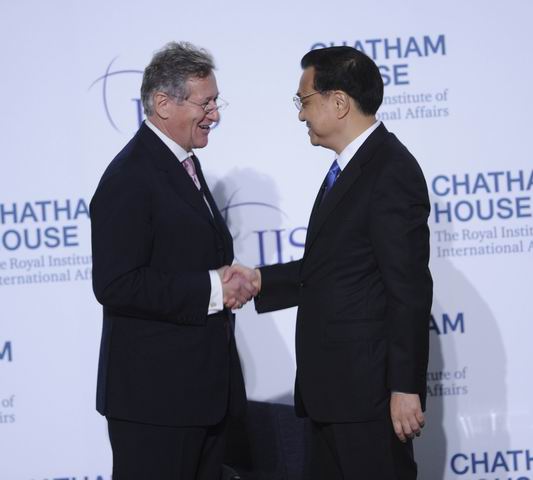 ??? 【英兩家頂級智庫搭臺 傾聽中國總理聲音】18日,李克強在擁有悠久歷史、金碧輝煌的倫敦金融城市長官邸,面向300多位智庫成員發(fā)表了題為《共建包容發(fā)展的美好世界》的演講。皇家國際事務(wù)研究所和國際戰(zhàn)略研究所同為全球頂級智庫。此間輿論認為,由兩家研究所共同舉辦同一場演講極為罕見。