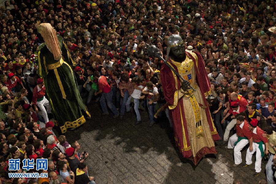 西班牙貝爾加(Berga)市的La Patum節上,巨大的人偶穿過狂歡的人群。