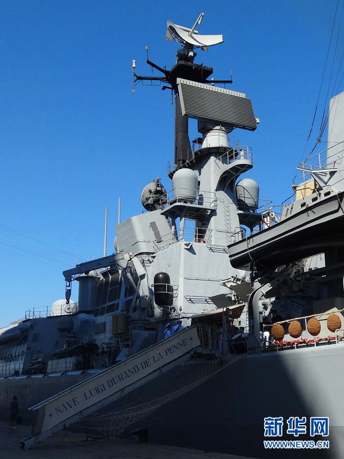 ????“路易吉·杜蘭德·德拉佩訥號”驅逐艦艦上設施。新華網記者 周喆 攝