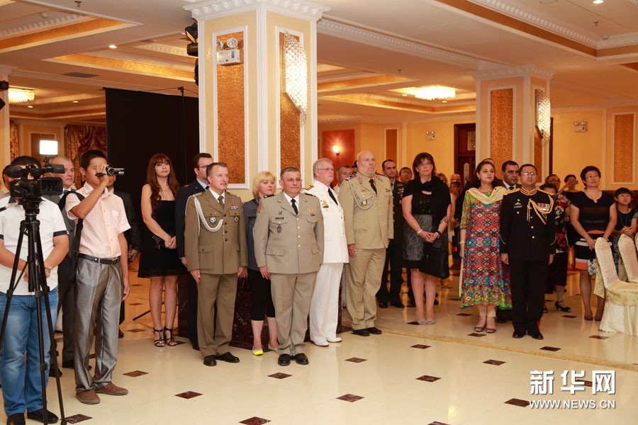 7月31日,中國駐烏茲別克斯坦大使館以孫立杰大使和黃天昌武官名義在塔什干米蘭賓館隆重舉行“八一”軍節招待會新華社發 記者沙達提)