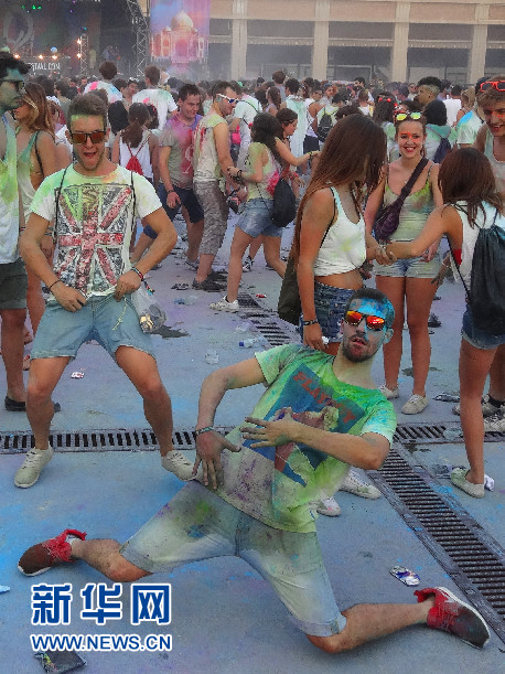 “2014巴塞羅那霍利節”現場的年輕人 (新華社記者周喆拍攝)
