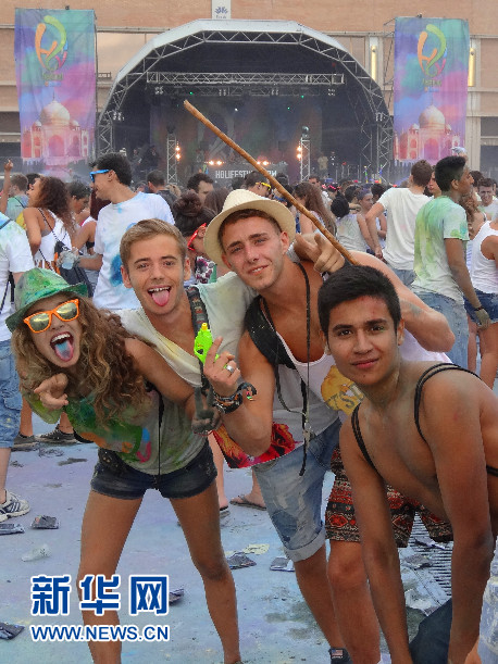 “2014巴塞羅那霍利節”現場的年輕人 (新華社記者周喆拍攝)